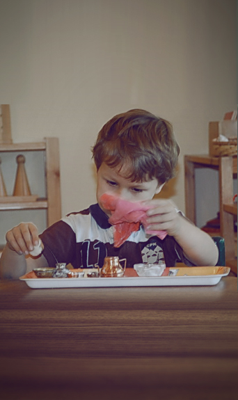 « Aide moi à faire seul », « à faire moi-même », « à penser seul ». Au niveau du développement, les enfants, de 3 à 6 ans traversent les mêmes étapes, c’est pourquoi ils sont réunis. Leur caractéristique commune est : « leur esprit absorbant ». À leurs âges, ils ont besoin de mouvement, de manipuler, de stimulation au niveau du langage et des sens, ils ont un besoin d’ordre.